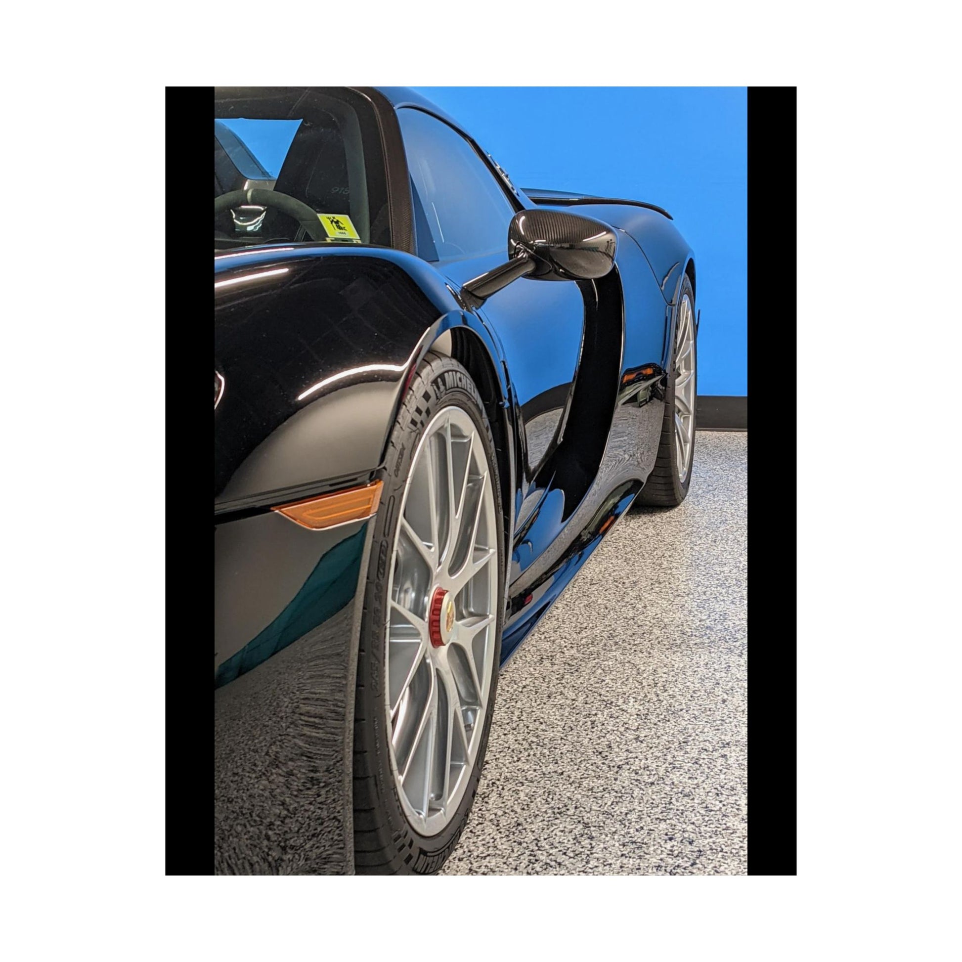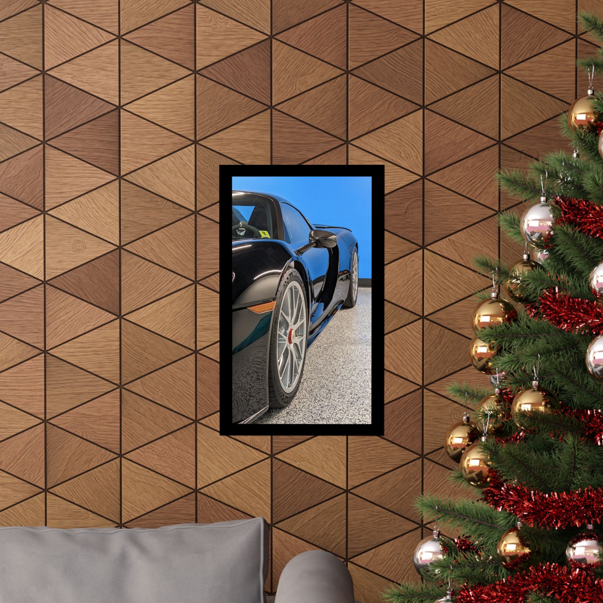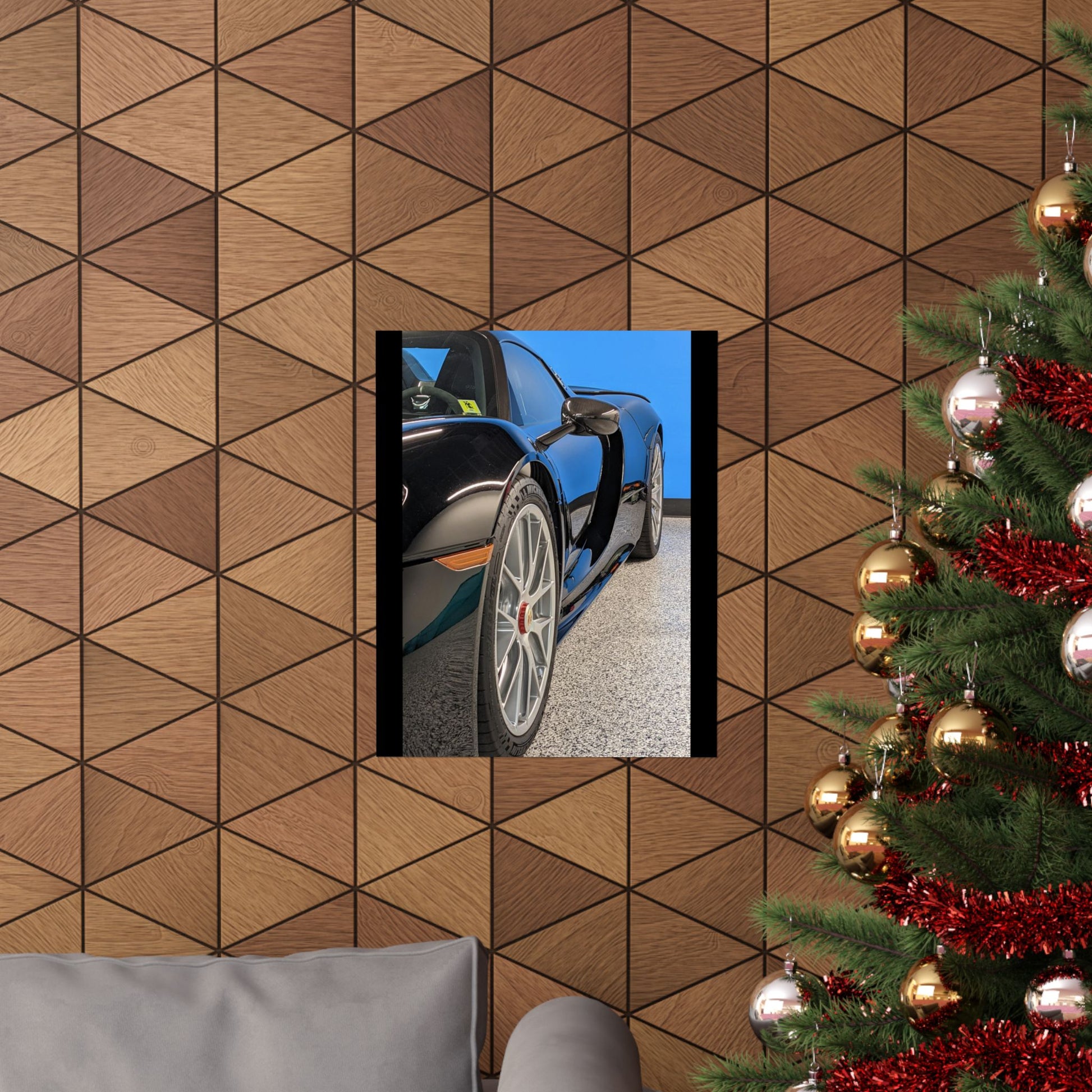 A matte vertical poster featuring a photograph of the Porsche 918 hypercar. This poster gives a sleek and stylish vibe, perfect for car enthusiasts and automotive lovers. Ideal for decorating bedrooms, offices, or man caves. Relevant for birthdays, Father's Day, or as a gift for car enthusiasts.